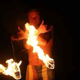 Александр Пентакль артист и разработчик творческих проектов, работающий в оригинальных жанрах: Колесо Сира, Рейнское Колесо, Воздушные Полотна, Огненное представление, Ходули,Жонглирование Кубом.